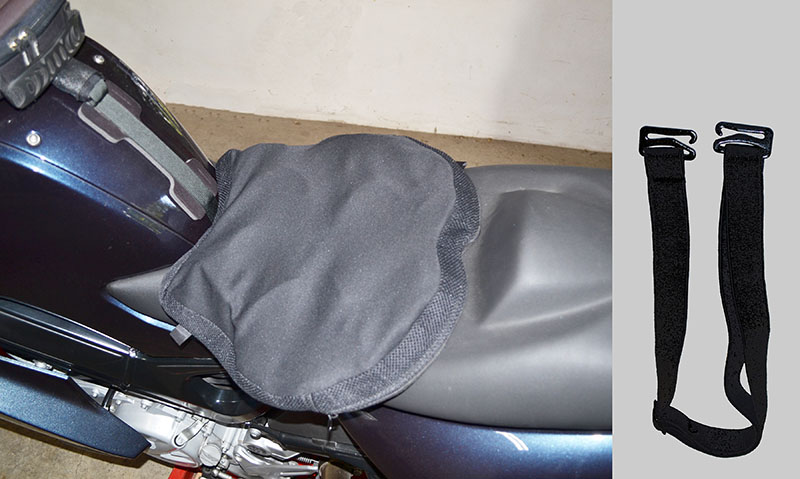 So I fiddled with the inflation. This thing is supposed to be just barely inflated, and that solved the disconnection from the bike issue. I also deep-sixed those girly straps, finding that the non-slip bottom of the cover (there is an inner, interconnected, multi-cell bladder and a removable, washable cover) along with the limpness provided by the minimal inflation allowed the AirHawk to stay put of its own accord. Finally, I slapped it on before I started out.